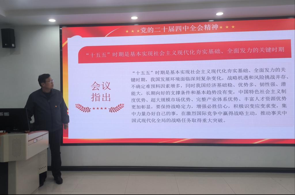 会议第一项,支部组织委员张小辉同志带领全体党员认真学习党的二十届四中全会公报,系统介绍全会召开背景、议程及重大成果,重点解读《中共中央关于制定国民经济和社会发展第十五个五年规划的建议》的核心内容,并强调习近平总书记重要讲话为我们今后的工作指明了前进方向、提供了根本遵循。
