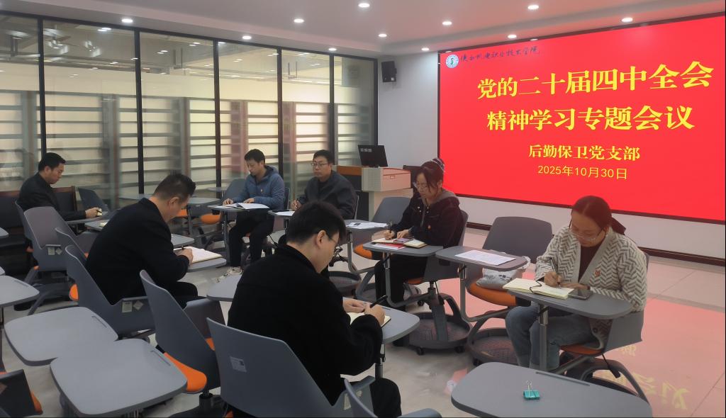 为深刻领会党的二十届四中全会精神要义,引导全体党员统一思想、凝聚共识,10月30日,后勤保卫党支部组织召开专题学习会议。会议由支部书记常小凯主持,支部全体党员参加会议。